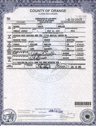 - Got a "long form" Birth Certificate from California plus a new picture ID from Ohio DMV for Hannah