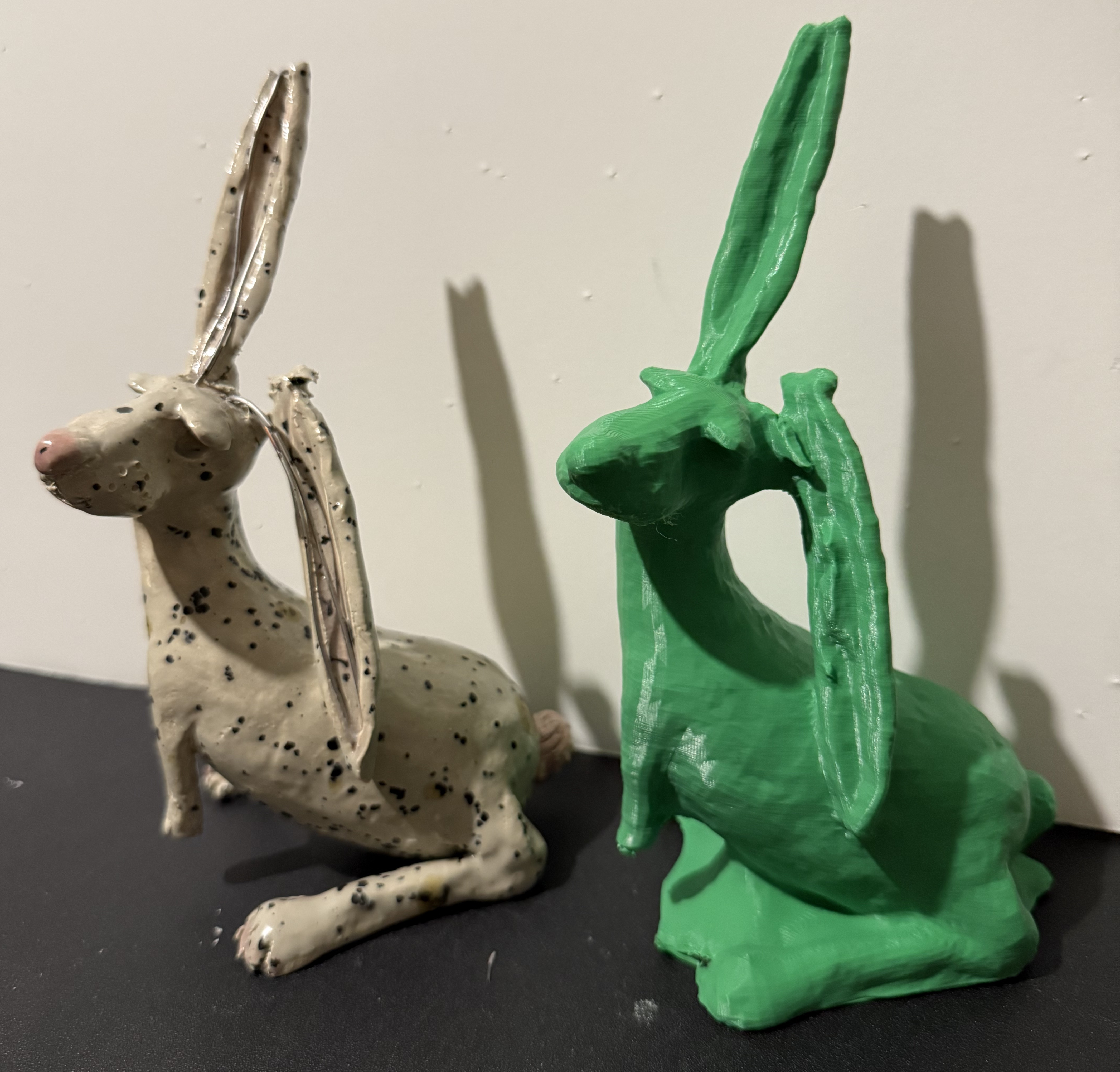 The whimsical rabbit is a ceramic and glaze creation of Bob Jennings.