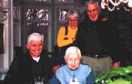 Jan 2002. These folks are Smellè's mother, brothers George (seated) and Carl and sister Joan. This photograph was posted on a website of snapshots that George maintains. Note the mirroring of the pair standing.