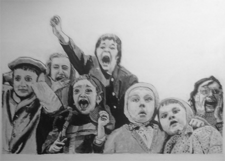 These kids are watching a puppet show, "Saint George and the Dragon". The year is 1963. It is outdoors, in Paris. Alfred Eisenstadt was a photographer for Life Magazine. Lots of organizations publish all-time best-pictures lists. This one always makes the cut. As one who paints from photographs, it makes my job easy when the composition and is so absolutely perfect. Seven miniature portraits of children, on the other hand, is a real challenge.