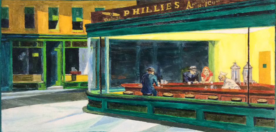 Nighthawks was created by Edward Hopper in 1942. The light in the painting comes from two sources: