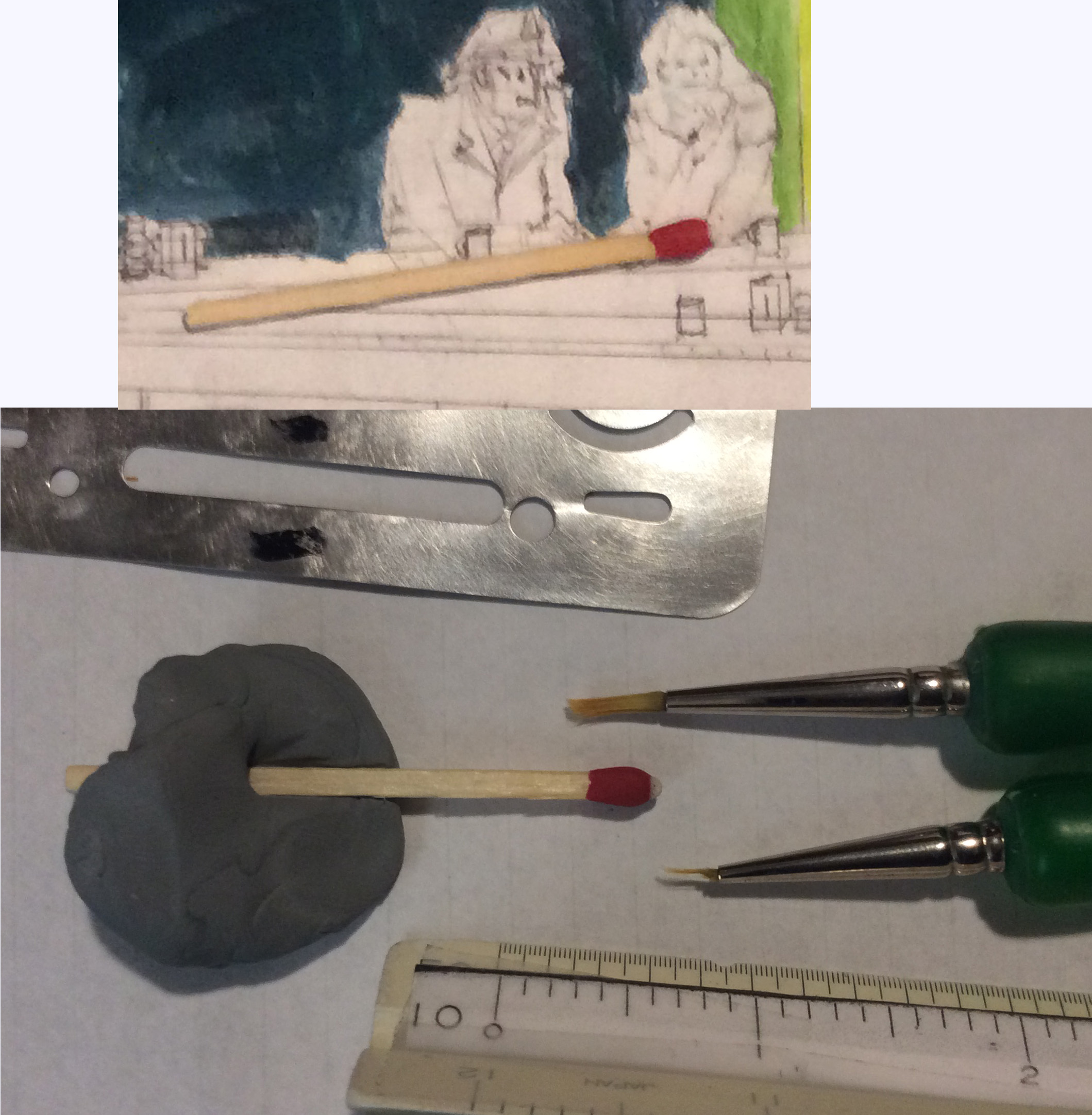 I cut down a paint brush such that there were only 3 hairs left. Think of a painting a face on the head of a match.