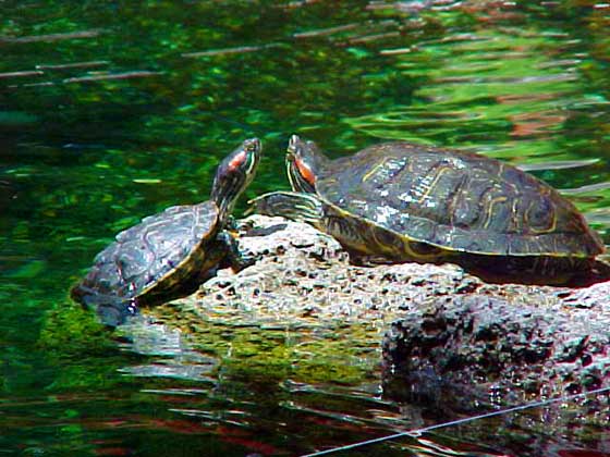 These turtles were in a fountain next to a sidewalk Mexican cafe in Old Town Santa Barbara.