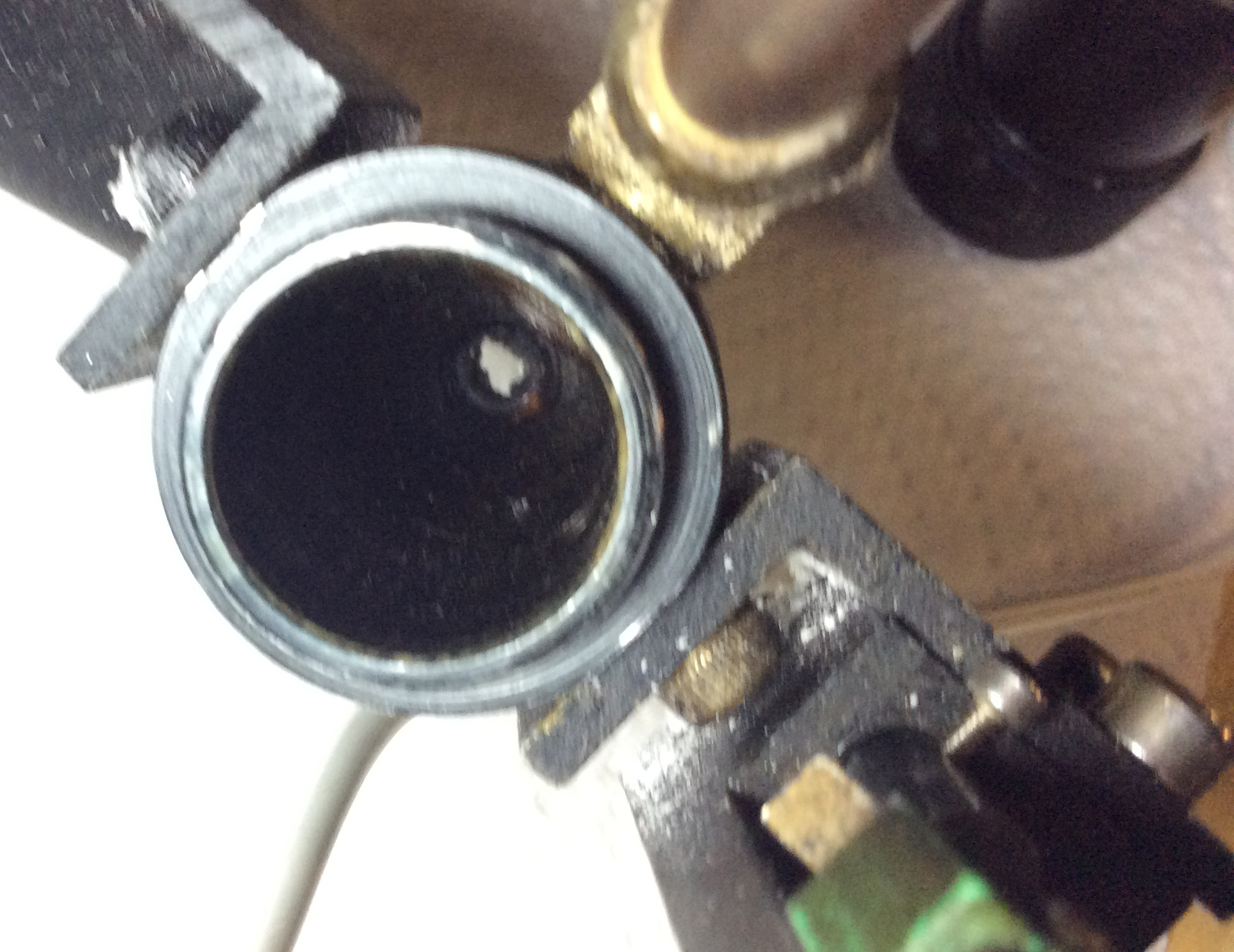 Reassembled unit with cracked lens. Concave side down. Gasket below.