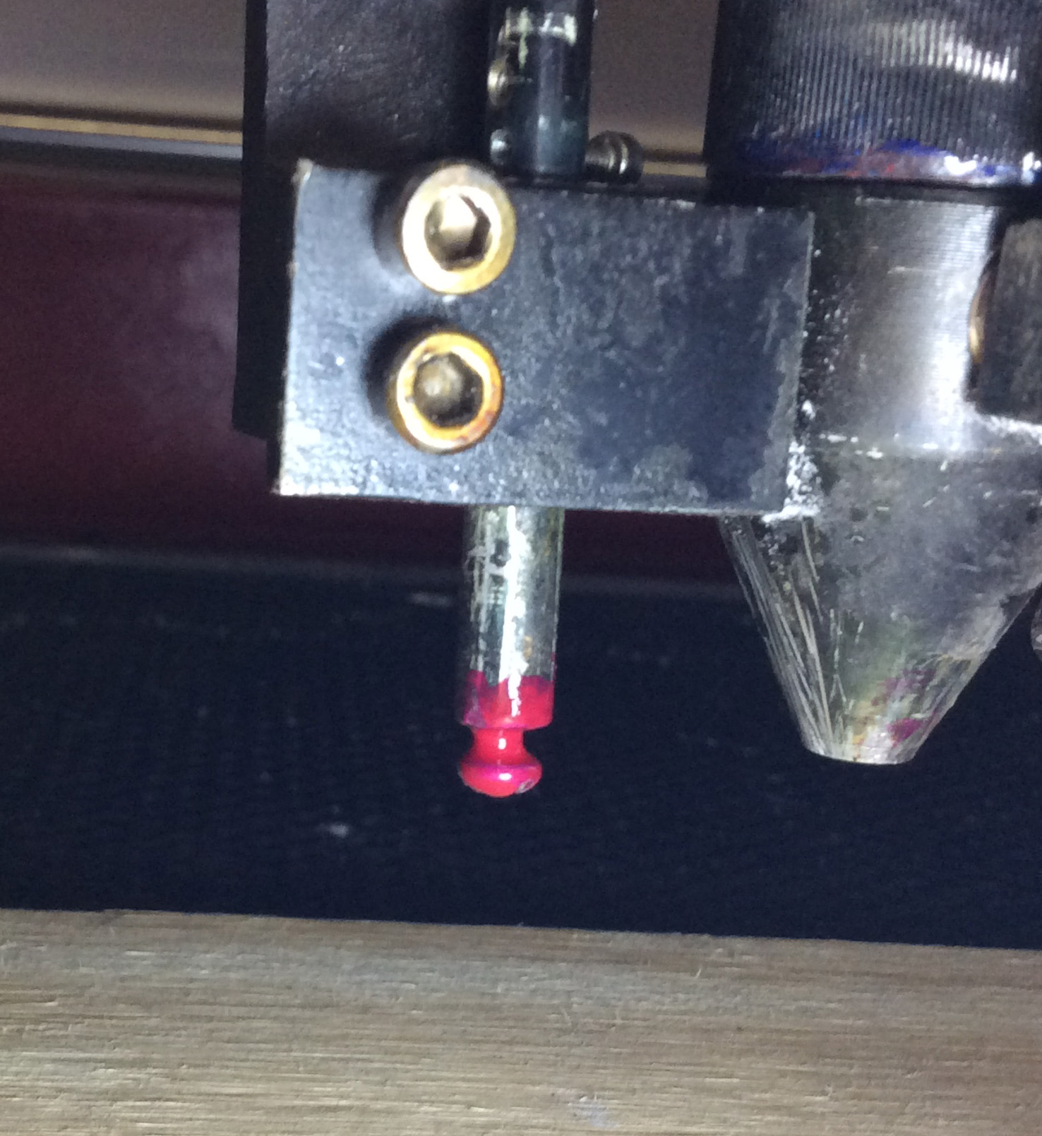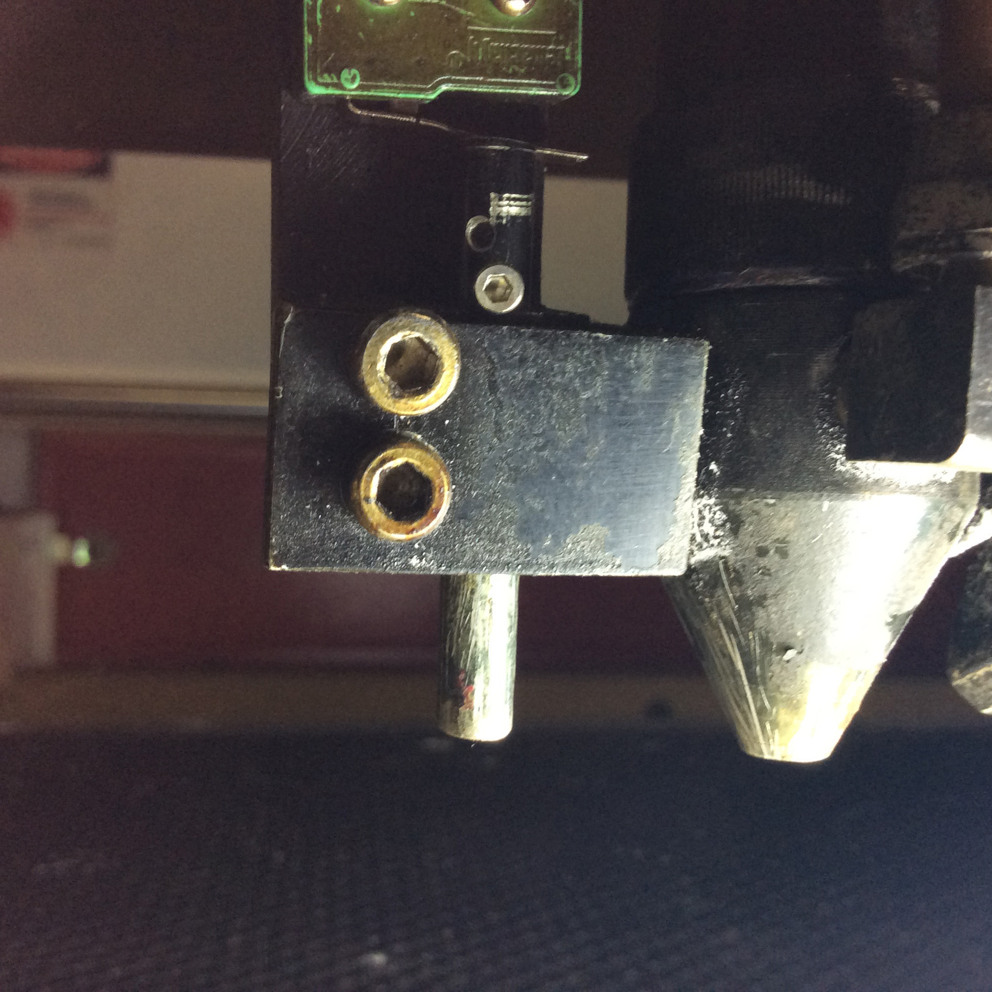 Note that bottom of screw is lowest point on plunger assembly. This touches first during z-0 operation, as it should.